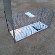 Jaula Transportín Metálico. Con piso liso fijo no extraíble. Puerta de guillotina, con cierre de seguridad mediante un gancho elástico, indicada para facilitar el traspaso de los gatos de la Trampa Manual Drop Trap o de una Jaula Trampa convencional. Dispone de asas centrales. Jaula rígida. Se manda montada a punto de uso. Transportín diseñado según demanda y experiencia de nuestros clientes (Asociaciones y Protectoras).